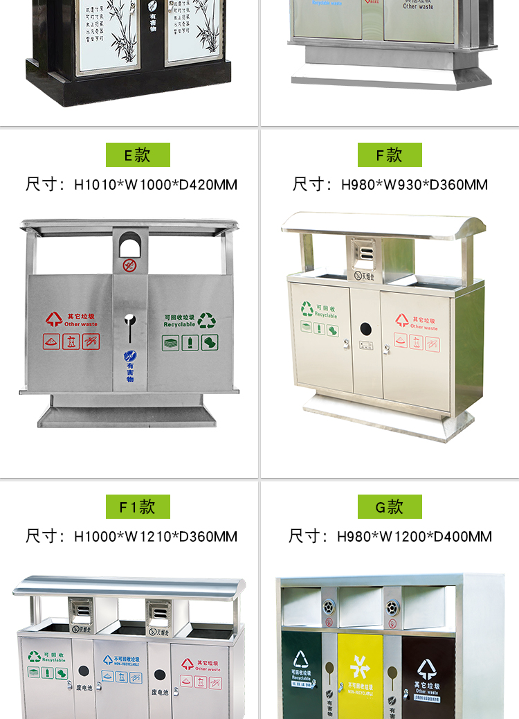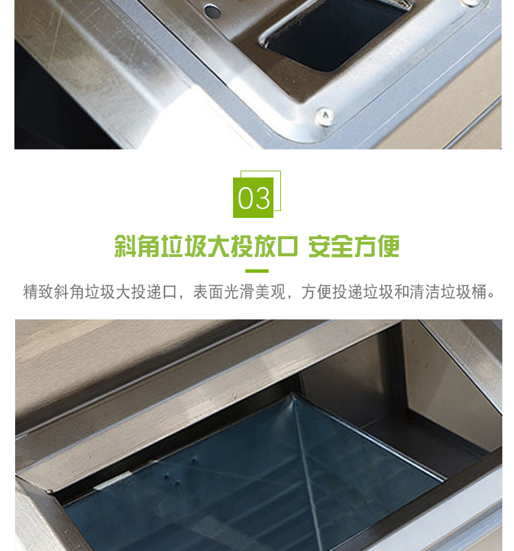 【品名】三分類垃圾桶  【品牌】 中星  【材質(zhì)】優(yōu)質(zhì)鍍鋅板  【內(nèi)膽】鍍鋅板、不銹鋼  【制作工藝】選用優(yōu)質(zhì)不銹鋼鋼板裁剪、壓制、折彎后再焊接而成型  【噴涂工藝】垃圾桶經(jīng)磷化噴砂處理后采用戶...