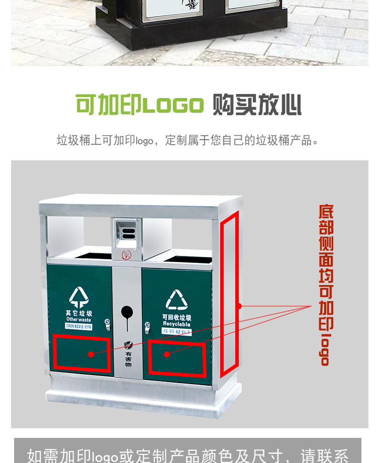 【品名】三分類垃圾桶 【品牌】 中星 【材質(zhì)】優(yōu)質(zhì)鍍鋅板 【內(nèi)膽】鍍鋅板、不銹鋼 【制作工藝】選用優(yōu)質(zhì)不銹鋼鋼板裁剪、壓制、折彎后再焊接而成型 【噴涂工藝】垃圾桶經(jīng)磷化噴砂處理后采用戶...