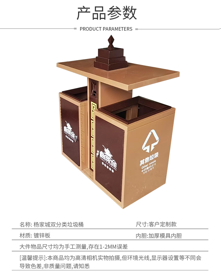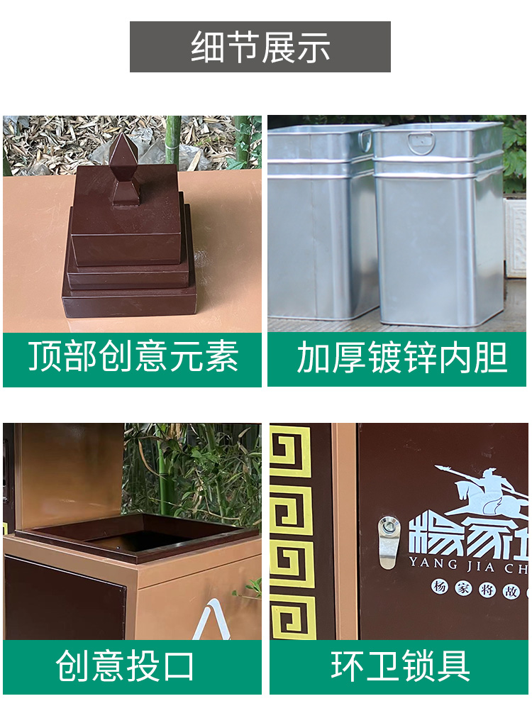 【品名】三分類垃圾桶 【品牌】 中星 【材質(zhì)】優(yōu)質(zhì)鍍鋅板 【內(nèi)膽】鍍鋅板、不銹鋼 【制作工藝】選用優(yōu)質(zhì)不銹鋼鋼板裁剪、壓制、折彎后再焊接而成型 【噴涂工藝】垃圾桶經(jīng)磷化噴砂處理后采用戶...