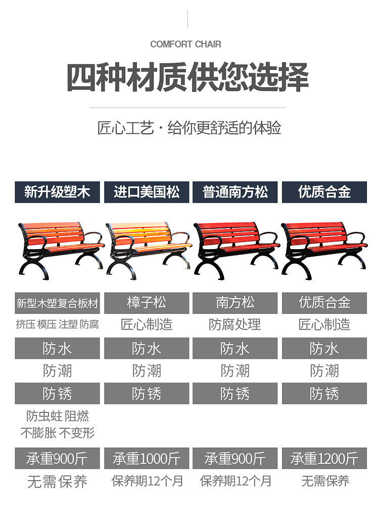 【材質(zhì)】鑄鐵腳/鑄鋁腳+實木/塑木(可選)