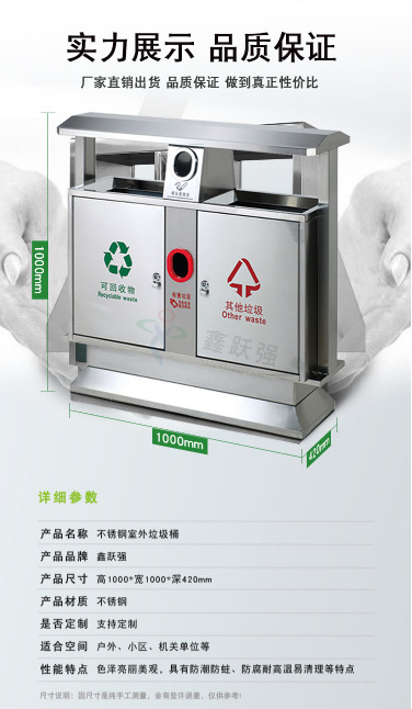 產(chǎn)品名稱 分類不銹鋼垃圾桶 產(chǎn)品型號 ZX-FX111 產(chǎn)品顏色 不銹鋼原色 外桶材質(zhì) 不銹鋼 內(nèi)桶材質(zhì) 鍍...