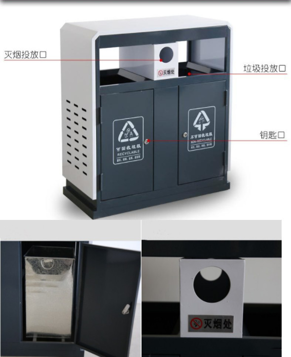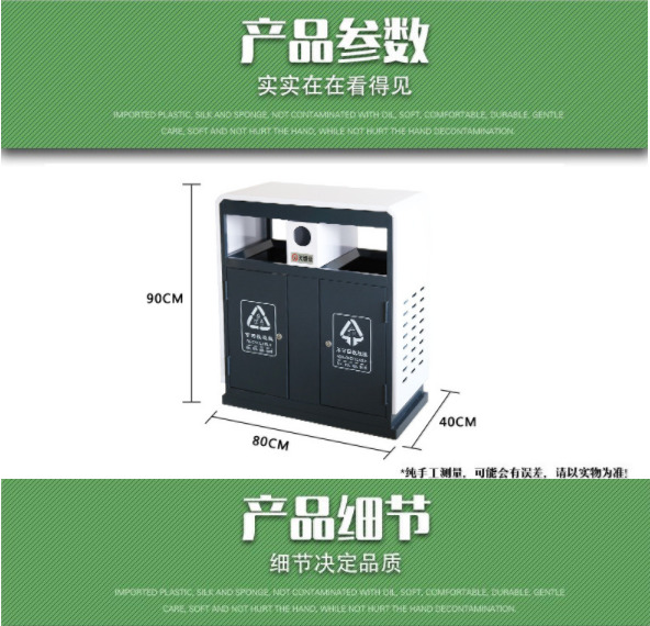 【品名】三分類垃圾桶  【品牌】 中星  【材質】優(yōu)質鍍鋅板  【內膽】鍍鋅板、不銹鋼  【制作工藝】選用優(yōu)質不銹鋼鋼板裁剪、壓制、折彎后再焊接而成型  【噴涂工藝】垃圾桶經磷化噴砂處理后采用戶...