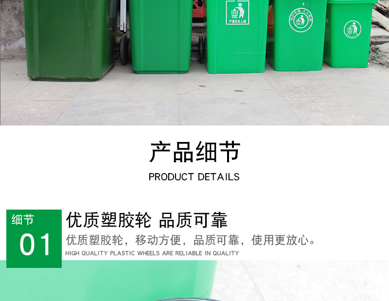 產(chǎn)品名稱 660升塑料垃圾桶 產(chǎn)品型號 ZX-660L 產(chǎn)品顏色 綠色/灰色/藍(lán)色/黃色/紅色 外桶材質(zhì) 聚乙 內(nèi)桶材質(zhì) 聚乙烯 容量 660L 建議使用場景 街...