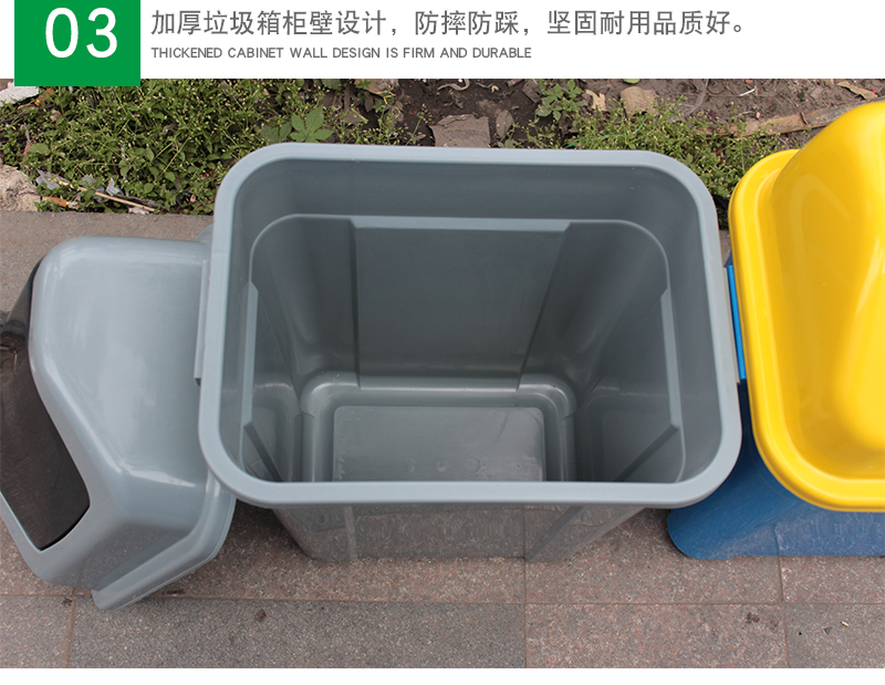 【品名】三分類垃圾桶 【品牌】 中星 【材質(zhì)】優(yōu)質(zhì)鍍鋅板 【內(nèi)膽】鍍鋅板、不銹鋼 【制作工藝】選用優(yōu)質(zhì)不銹鋼鋼板裁剪、壓制、折彎后再焊接而成型 【噴涂工藝】垃圾桶經(jīng)磷化噴砂處理后采用戶...