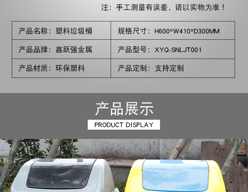 產(chǎn)品名稱 660升塑料垃圾桶 產(chǎn)品型號 ZX-660L 產(chǎn)品顏色 綠色/灰色/藍色/黃色/紅色 外桶材質(zhì) 聚乙 內(nèi)桶材質(zhì) 聚乙烯 容量 660L 建議使用場景 街...