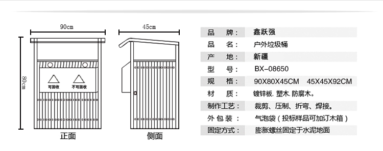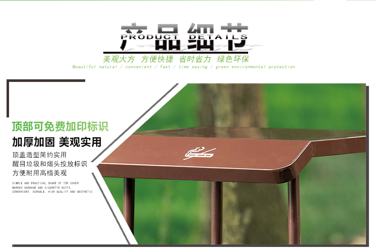 【品名】三分類垃圾桶 【品牌】 中星 【材質(zhì)】優(yōu)質(zhì)鍍鋅板 【內(nèi)膽】鍍鋅板、不銹鋼 【制作工藝】選用優(yōu)質(zhì)不銹鋼鋼板裁剪、壓制、折彎后再焊接而成型 【噴涂工藝】垃圾桶經(jīng)磷化噴砂處理后采用戶...