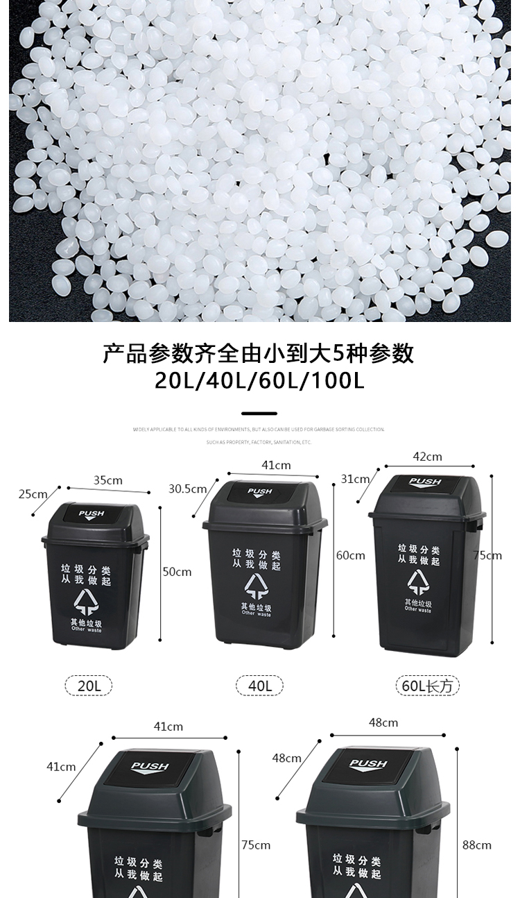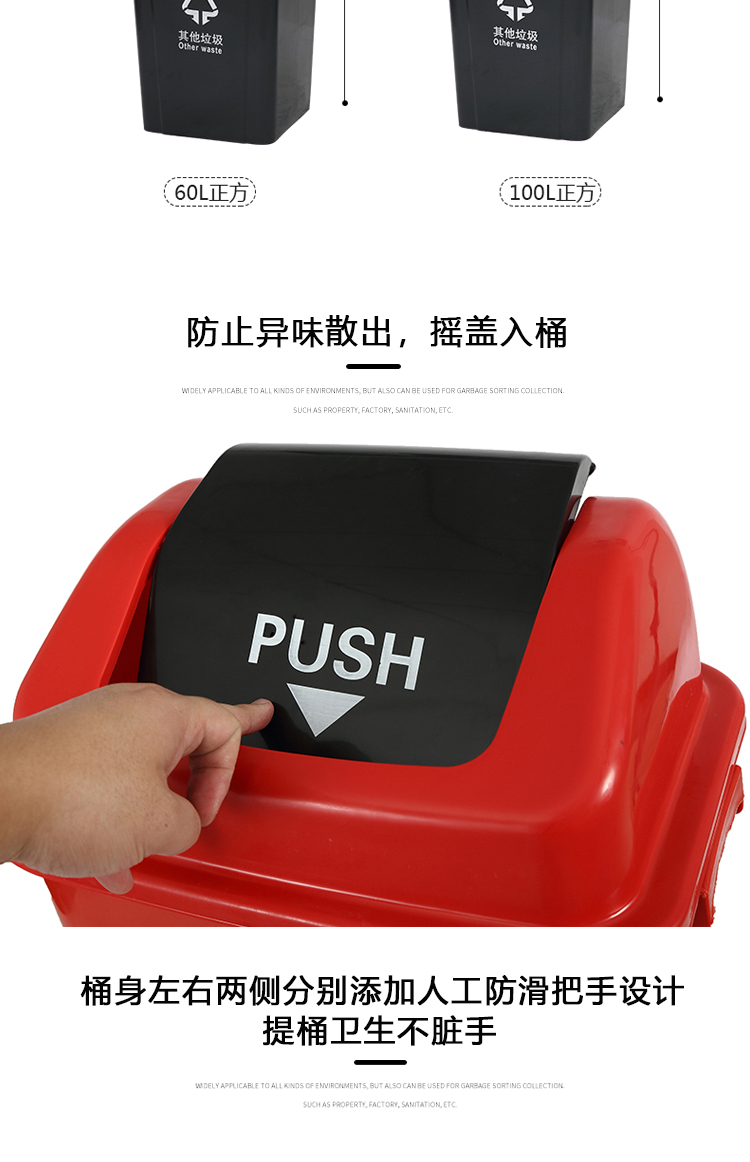 產(chǎn)品名稱(chēng) 660升塑料垃圾桶 產(chǎn)品型號(hào) ZX-660L 產(chǎn)品顏色 綠色/灰色/藍(lán)色/黃色/紅色 外桶材質(zhì) 聚乙 內(nèi)桶材質(zhì) 聚乙烯 容量 660L 建議使用場(chǎng)景 街...