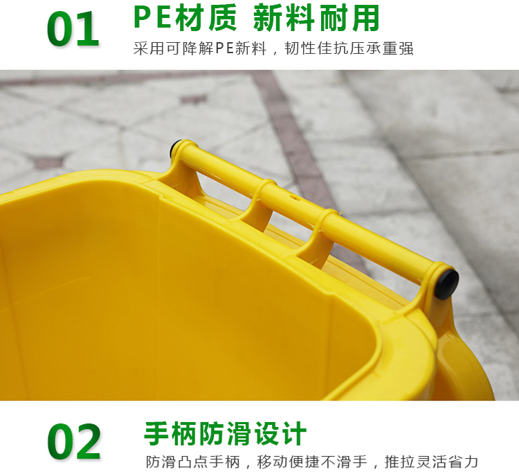 產(chǎn)品名稱(chēng) 660升塑料垃圾桶 產(chǎn)品型號(hào) ZX-660L 產(chǎn)品顏色 綠色/灰色/藍(lán)色/黃色/紅色 外桶材質(zhì) 聚乙 內(nèi)桶材質(zhì) 聚乙烯 容量 660L 建議使用場(chǎng)景 街...
