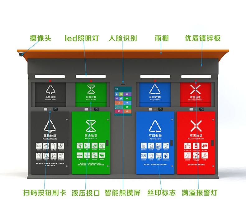 【品名】三分類垃圾桶 【品牌】 中星 【材質(zhì)】優(yōu)質(zhì)鍍鋅板 【內(nèi)膽】鍍鋅板、不銹鋼 【制作工藝】選用優(yōu)質(zhì)不銹鋼鋼板裁剪、壓制、折彎后再焊接而成型 【噴涂工藝】垃圾桶經(jīng)磷化噴砂處理后采用戶...